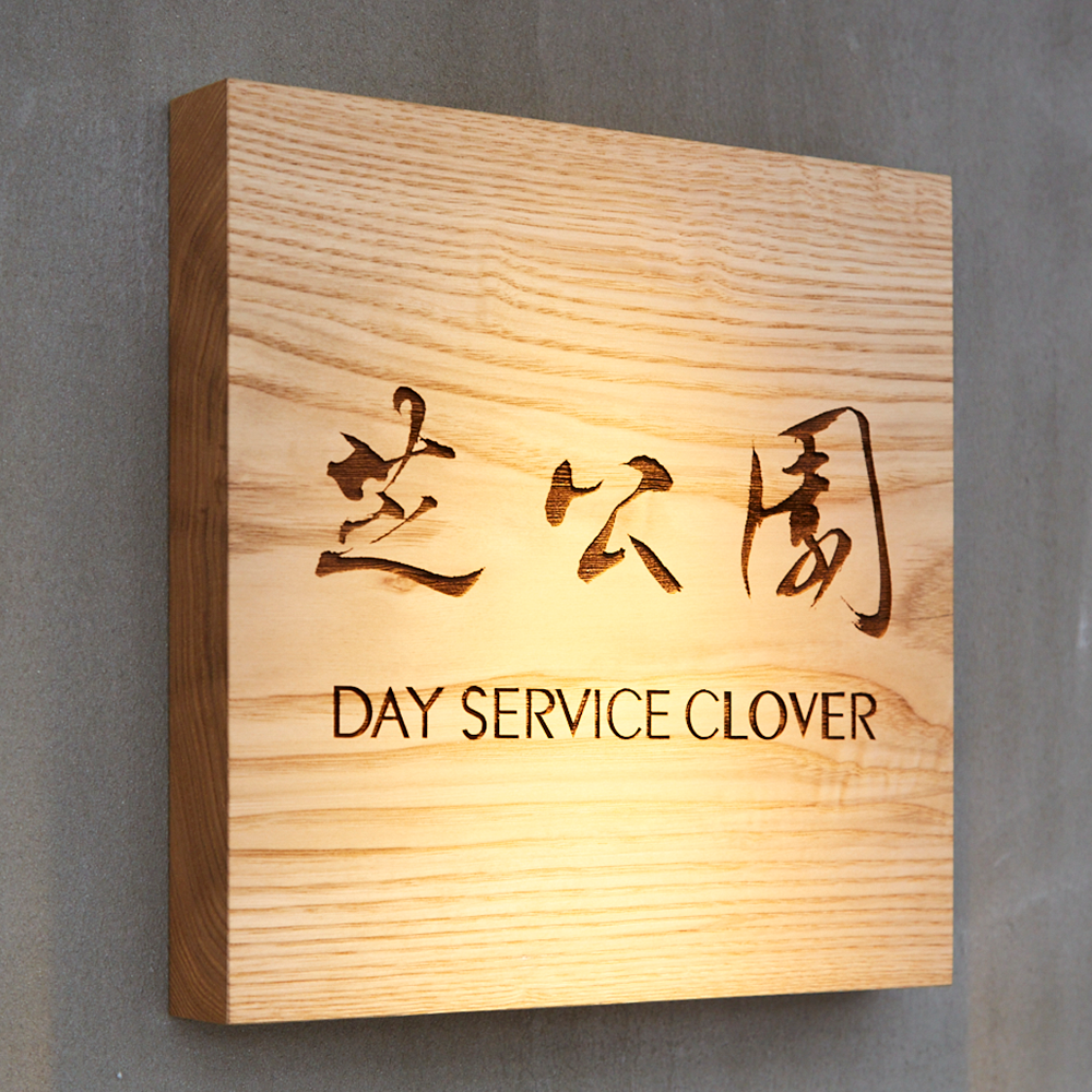 デイサービスクローバー芝公園は、「芝公園駅」から徒歩5分の場所に立地する建物の1階にあります。内装コンセプトは「書」。書道家としても活動しているクローバーのスタッフが書き上げた「書」作品が飾られています。